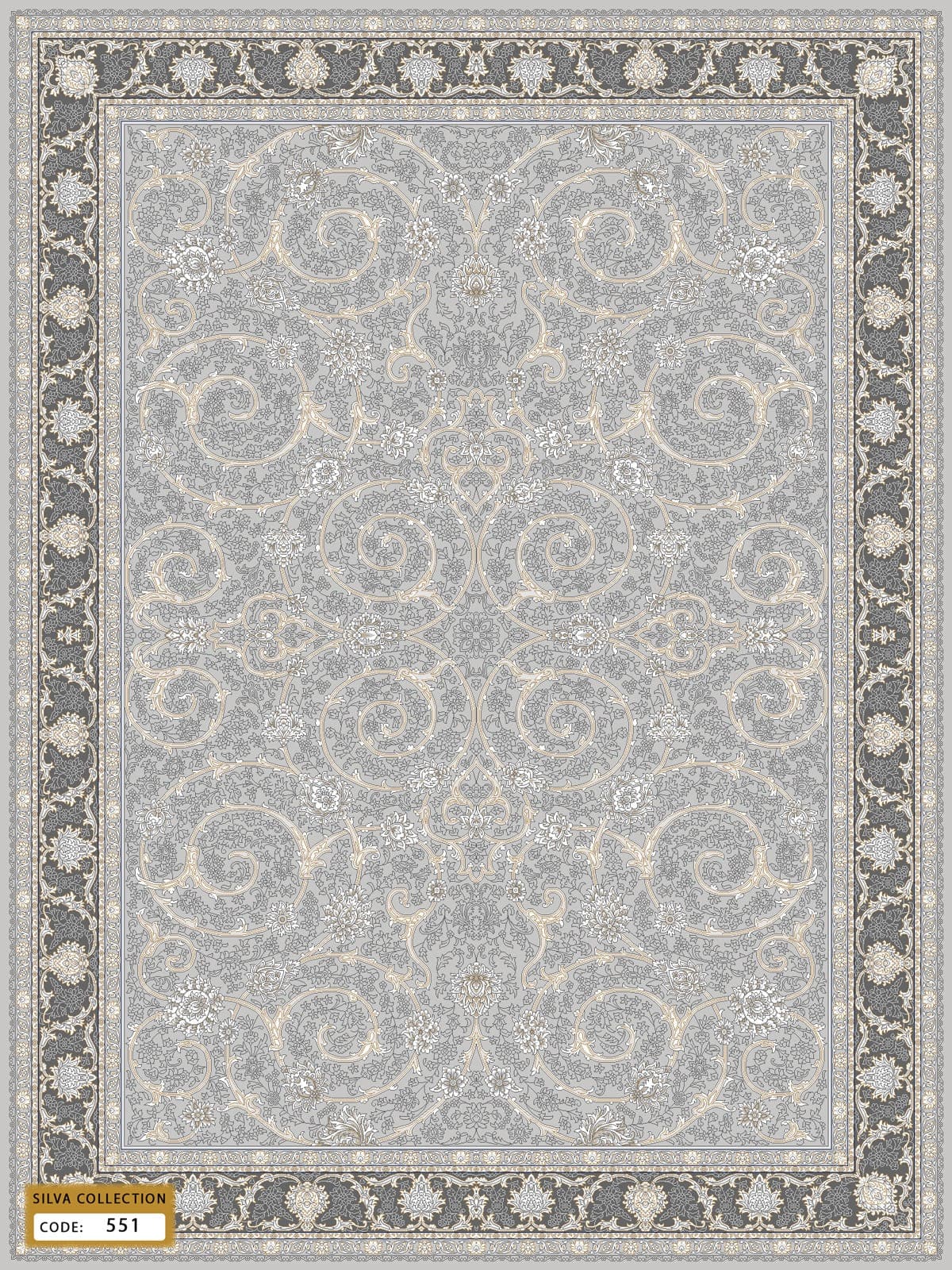 Silva Collection Grey Persian Floral Rug – Code 551